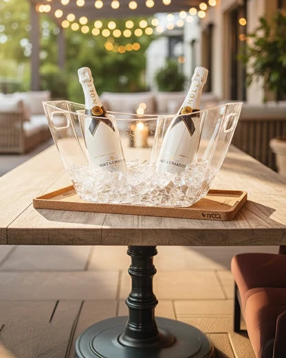 The VinoQ Double Wine Cooler combines elegance and refinement with ultimate functionality. Designed to keep your wine at the perfect temperature—without condensation or label damage—it offers a seamless and sophisticated wine experience.